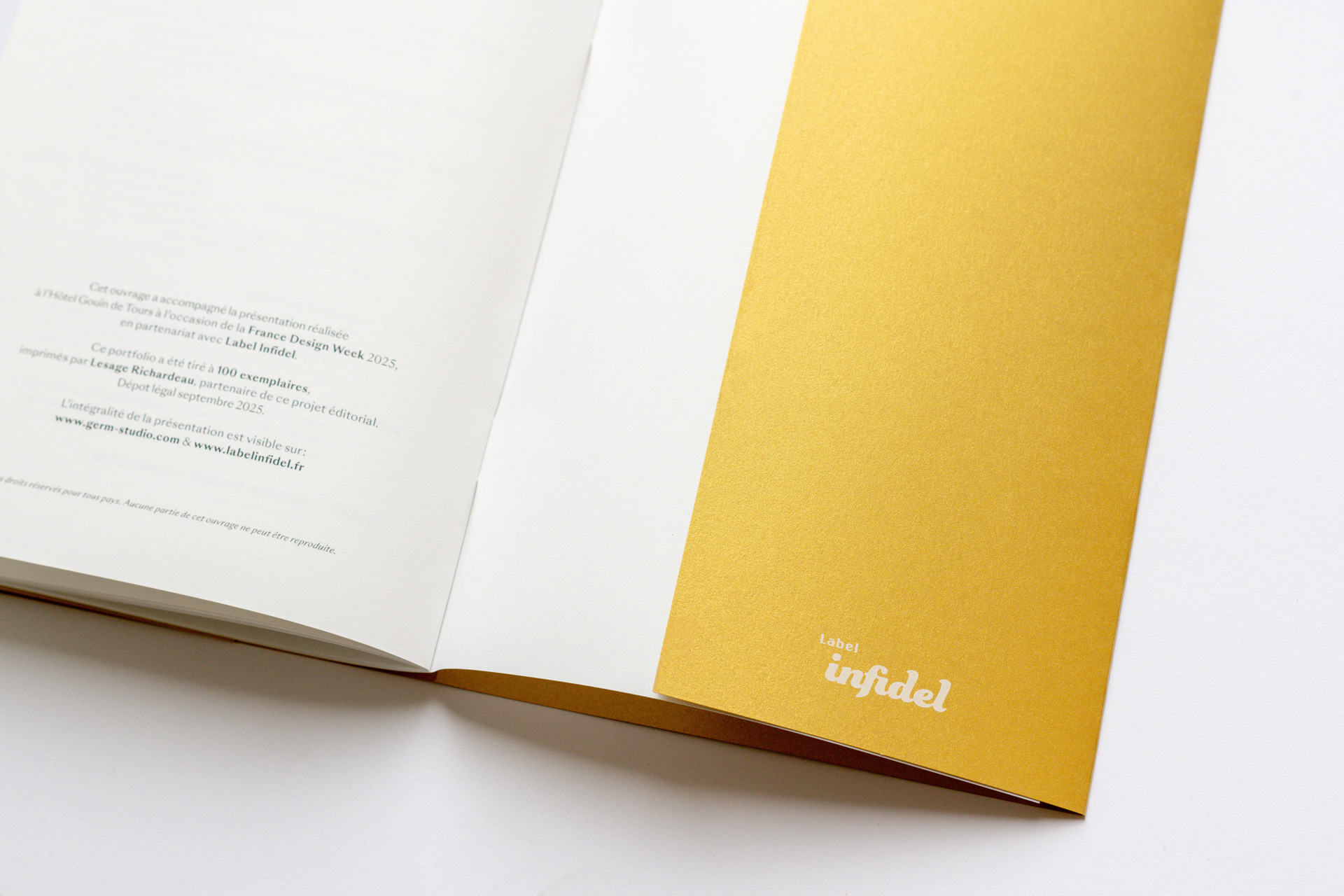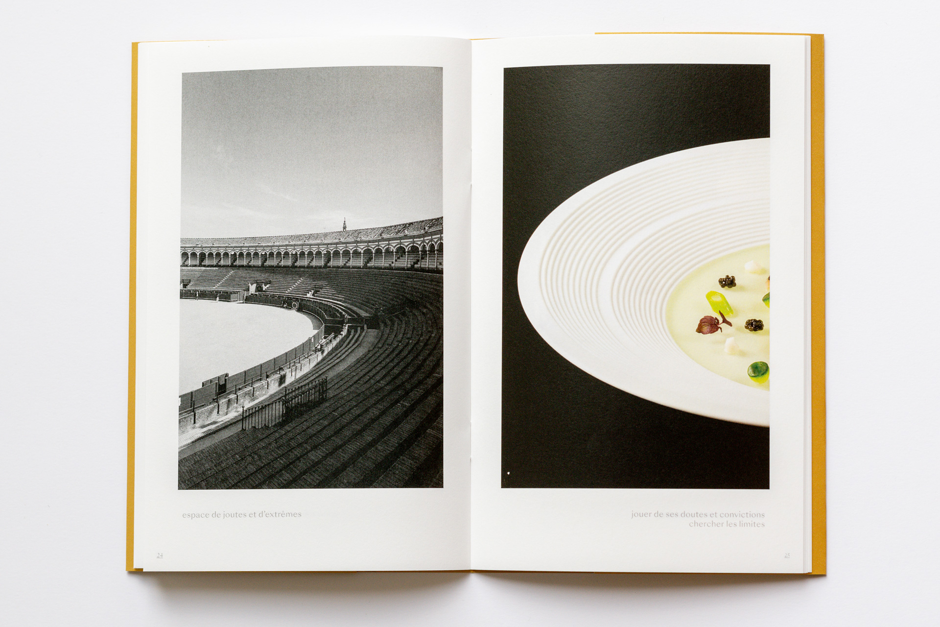 Un livret inédit signé Germain Bourré : chaque double page révèle le contexte d’un projet culinaire et sa création finale. Un objet éditorial soigné, avec couverture dorée et papier raffiné, à la fois poétique et inspirant.